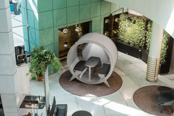 Eye-catching design and safety are brought together in a BlockO Base.‎ Disinfection lighting and an antimicrobial coating destroy viruses and bacteria from its surfaces.‎ The exterior comes with a choice of wooden veneer finishes or Fenix laminate options, matched expertly with the perfect color of a Slalom Eco Felt interior.‎