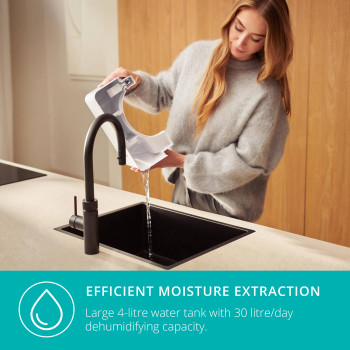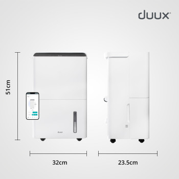• Bora is a stylish dehumidifier that creates the ideal climate in any room, such as your laundry room, attic or basement. The compressor draws in air and extracts the moisture that is collected in the water tank with a capacity of 4 litres. Bora comes with a built-in hygrostat and carbon filter and is easy to operate via the Duux Smart app.