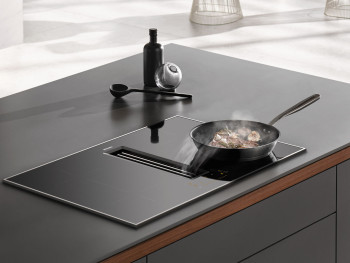 Induction hob with integrated vapour extraction with Silence motor and 4 individual cooking zones for recirculation mode