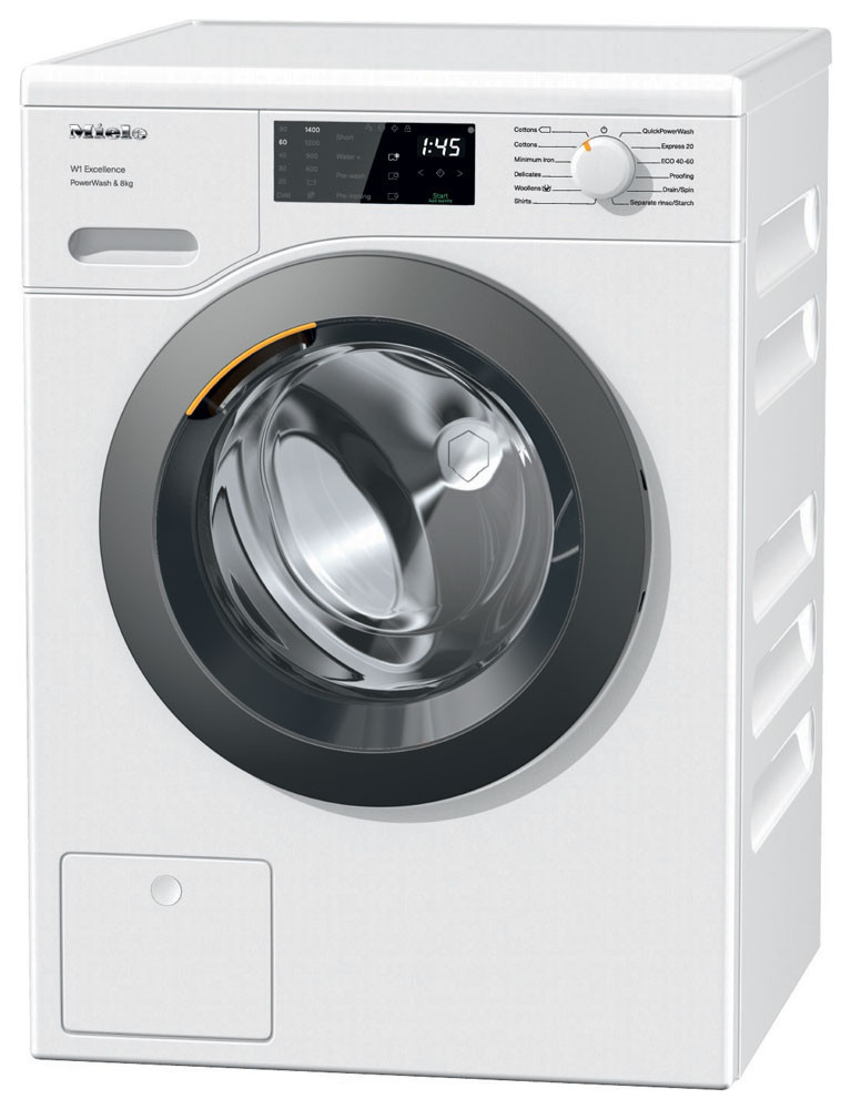 • W1 Front-loading washing machine best wash results in no time. Revolutionary PowerWash economy with every load for clean, quick and especially energy-efficient for small loads. The Miele ProfiEco EnergySave motor is economical, powerful, long-lasting and quiet. Enjoy 50% less ironing or smoothing after a wash program thanks to pre-ironing.