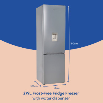 Introducing the Russell Hobbs Frost Free Fridge Freezer, blending functionality and modern style in a sleek silver finish. Boasting an ample 279L capacity, it's divided into 204L for fresh groceries and 75L for frozen delights.